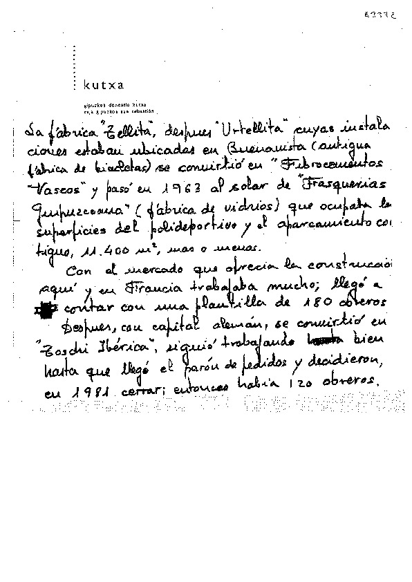 | Ezaugarriak: | Altza Auzoko Osasun Batzordearen idatzia Donostiako Udalari zuzendua, Toschi Ibérica enpresaren jarduera salatuz -zarata egin, hautsa igortzi eta hondakinen botateagatik- eta enpresaren leku aldatzea eskatuz |