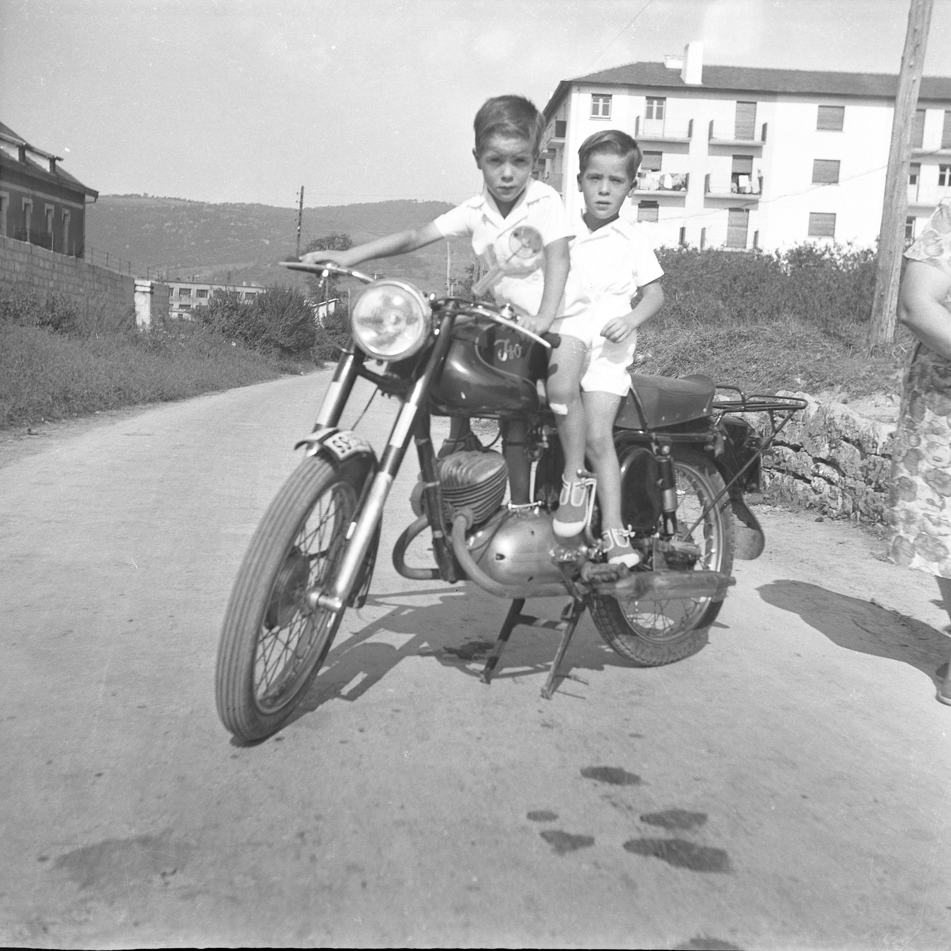 Descripción: Manolo y Vicente Iranzo en la moto Lube de su padre Félix Iranzo
