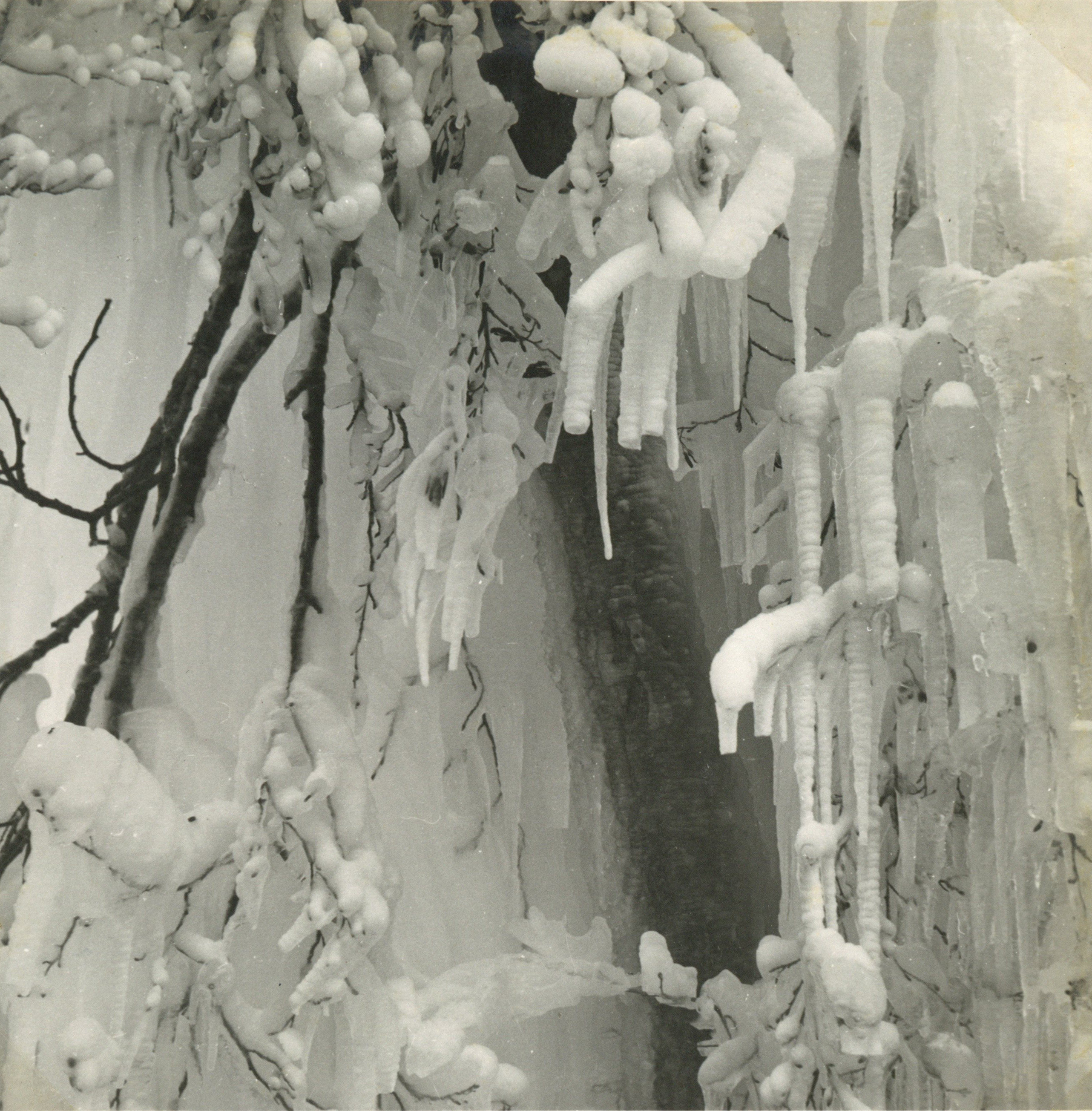 Oharrak: Antondegi mendian, 12 gradu zero azpitik. Artikutzatik Donostiara doan uraren hodiak eztanda egin zuen eta ura izoztuta geratu zen. Argazkilaria Francisco Armendariz Otalora da (Donostia, 1904-1993). 1929. urtean Maria Aranburu Aldaiarekin ezkondu zenean Sarruetako Aingelugoia baserrira etorri zen bizitzera Sarroeta-Martutene erakusketa