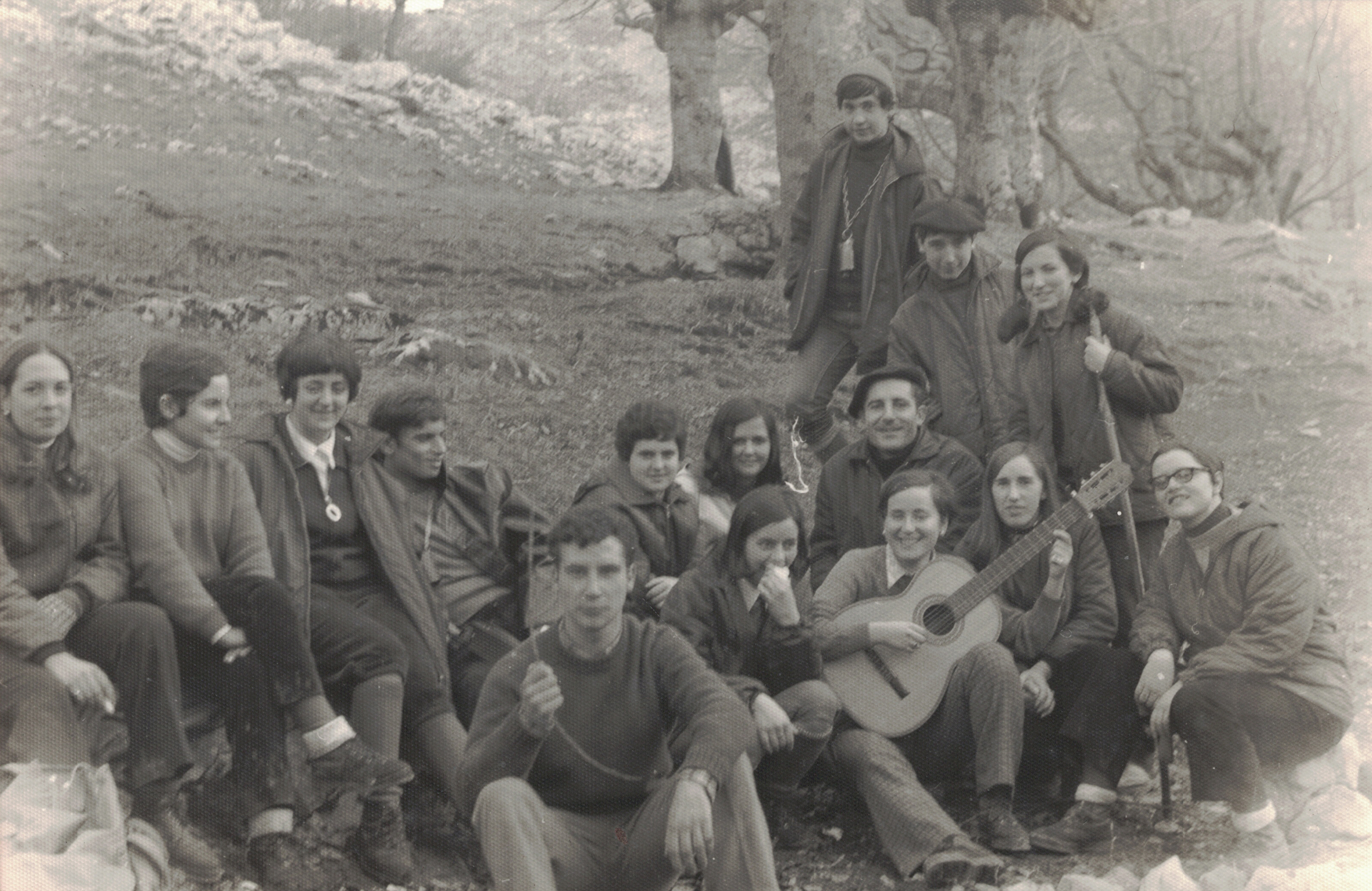 Oharrak: Ezkerretik eskuinera: Mª Carmen, ¿?,¿?,Juan Andrés Vega, Etxaniz, Juana Mª Larrea, ¿?. Gazte-Leku elkartea (Santa Barbara). Altzathlon, mendizaletasuna