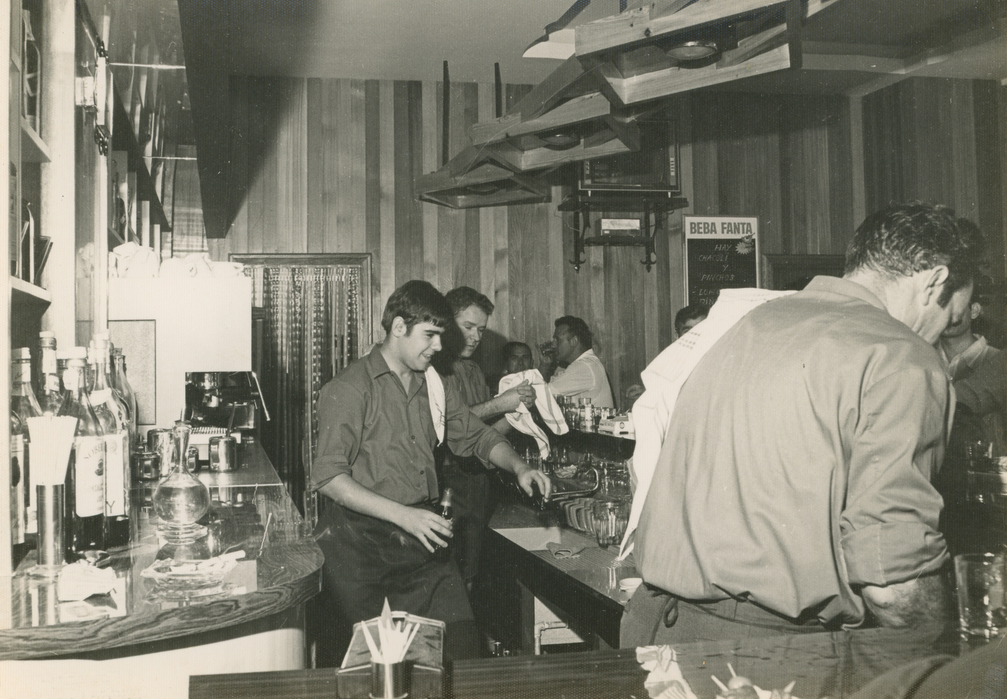 Oharrak: Barran: Juan Ariztegi (bizkarra emanda), Juantxo Ariztegi eta Román Ariztegi. Elizondo. Atzealdean: "Reportajes fotográficos FELIX / Bº Santa Bárbara - Tel. 51053 / ALZA - S. Sebastián / 5 OCT. 1969"