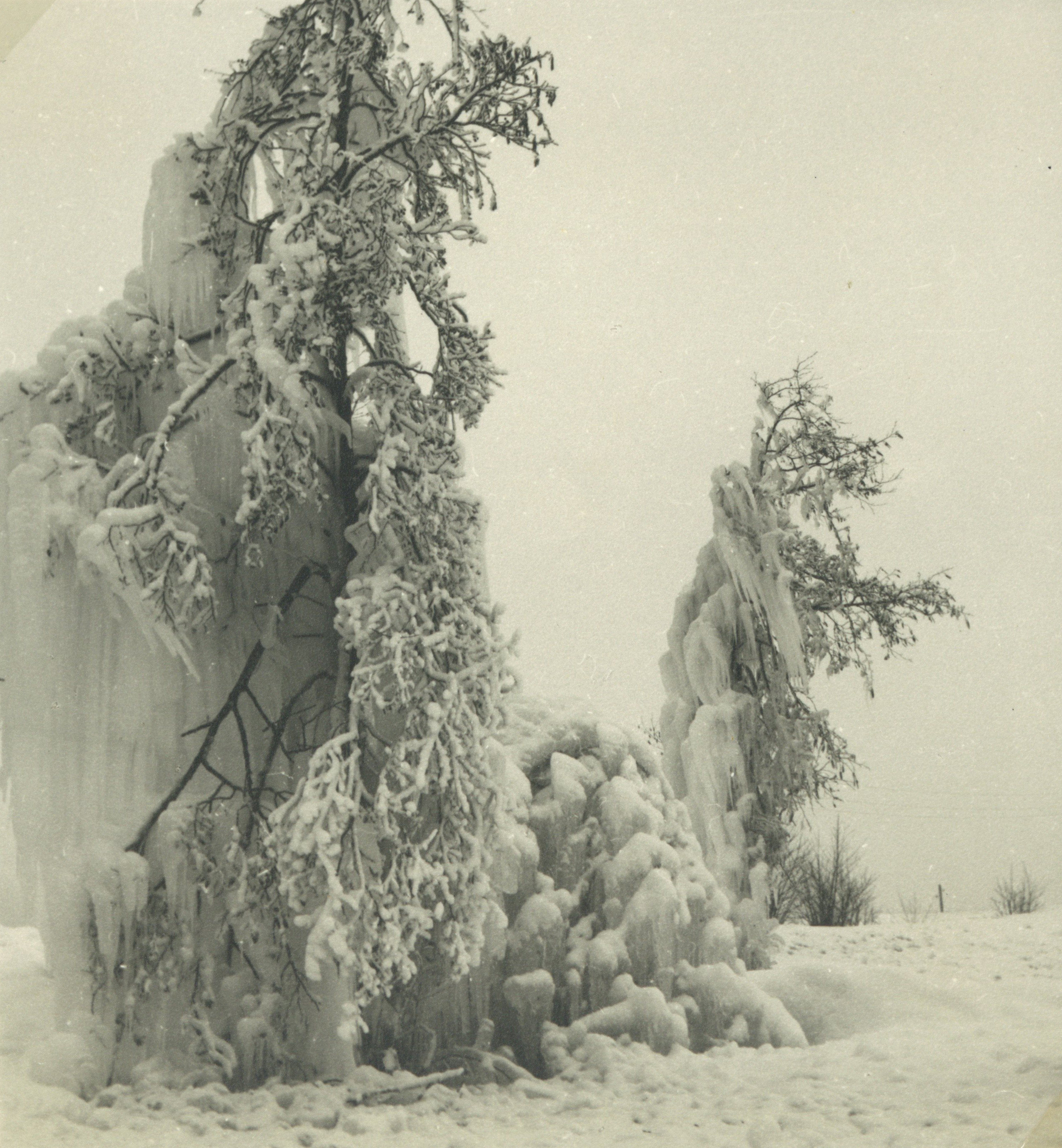 Observaciones: "Monte de Antondegui. Explotó la tubería del agua de conducción de Artikutza a San Sebastián y el agua quedó helada. 12º bajo cero". El autor de la fotografía es Francisco Armendáriz Otalora (Donostia, 1904-1993). En 1929 se casó con María Aramburu Aldaya (Donostia, 1906-2011), viniendo el matrimonio a vivir al caserío Aingelugoia de Sarrueta.