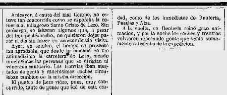 El pueblo de Lezo viose pues, muy concurrido tanto de gente que fue de esta ciudad, como de los inmediatos de Rentería, Pasajes y Alza.