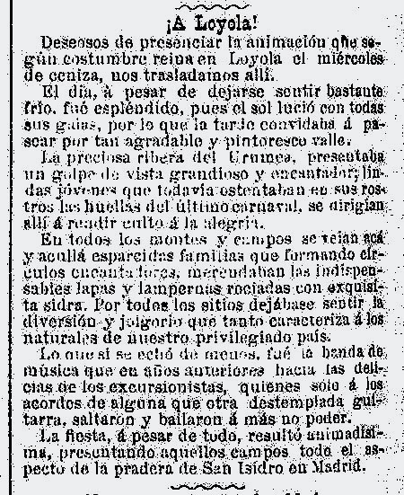 Deseosos de presenciar la animación que según costumbre reina en Loyola el miércoles de ceniza, nos trasladamos allí.
