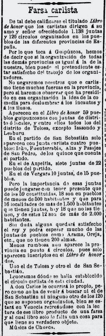 Por lo que toca a Guipúzcoa, hemos de decir que si la organización de todas las demás provincias es igual a la de la nuestra, bien puede el pretendiente estar satisfecho del trabajo de los organizadores.